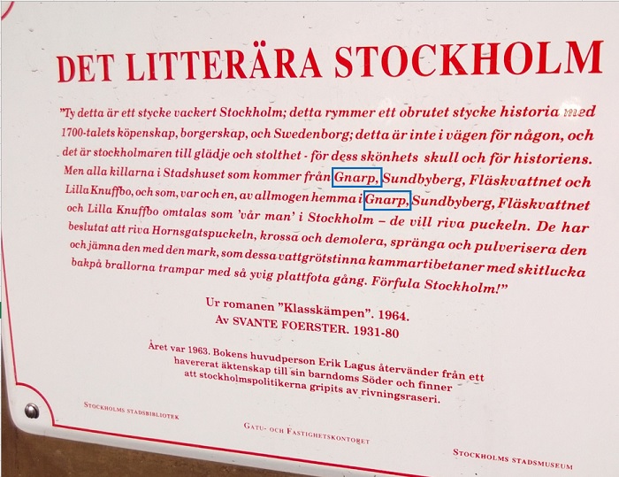 Att läsa på en plåtskylt på Hornsgatspuckeln i Stockholm:
