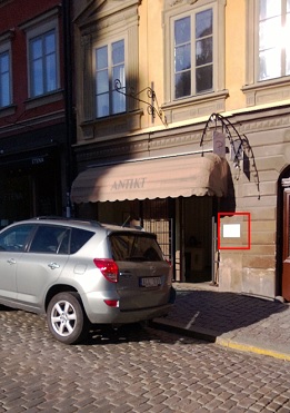(Plåtskylten med den omskakande upplysningen är markerad i rött.)